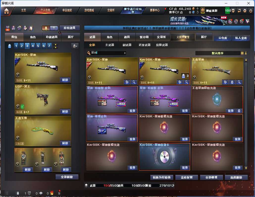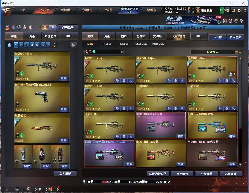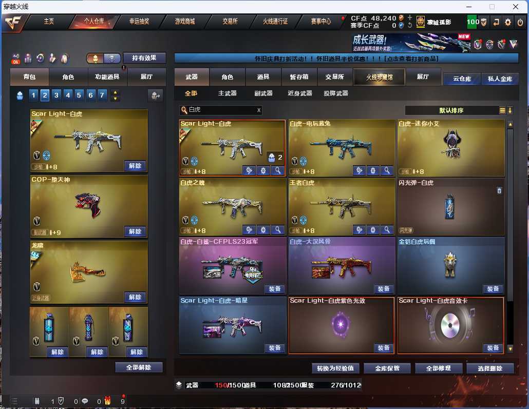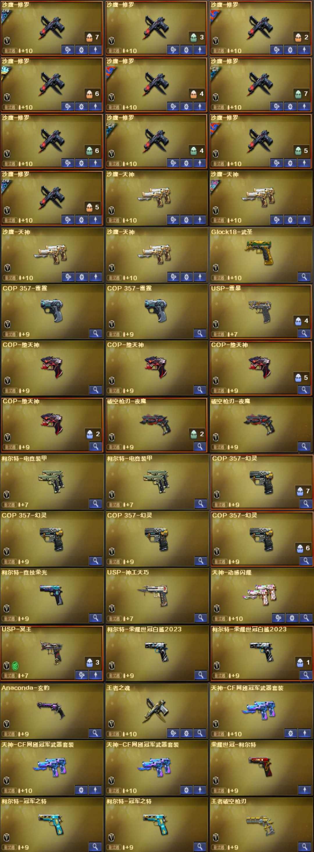 满副满刀满主流武器:12把cop、七把柯尔特、三usp雷暴冥王神巧、七屠龙带皮肤炽芒蝶刃x2两冠军小刀等等禁止利用账号进行开挂、使用辅助违规软件诈骗等违规操作。