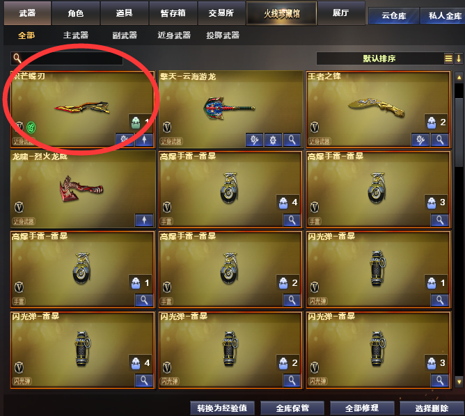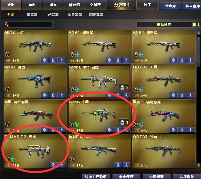 神威莲华✨生化炽芒蝶刃蝴蝶刀两把✨蛇影清道夫✨斯泰尔-蝴蝶✨炼狱狮子✨生化6盘6烈✨幻影加利尔法玛斯