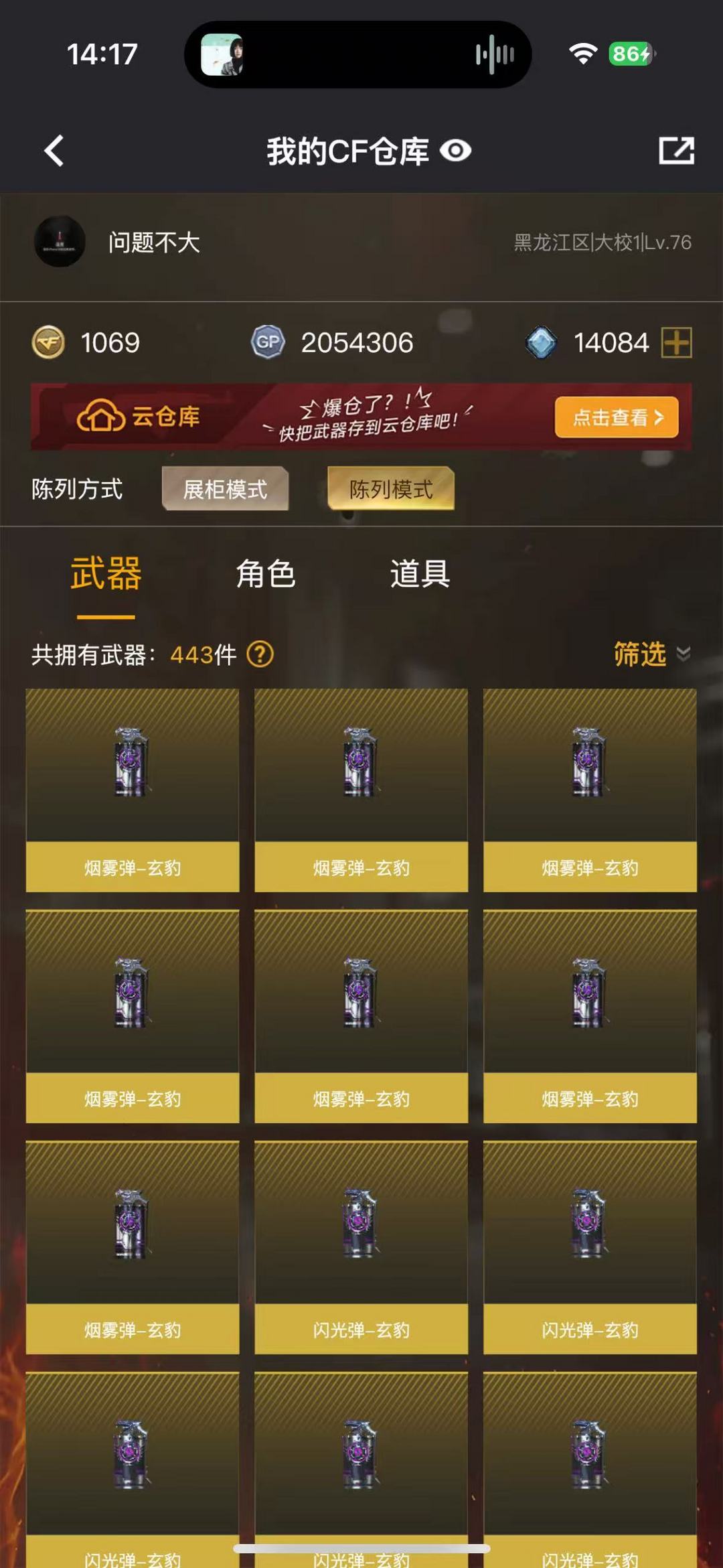 自己玩的号,玄豹雷烟闪,武器打排位生化都够用,道具基本都有。请勿开挂!!!