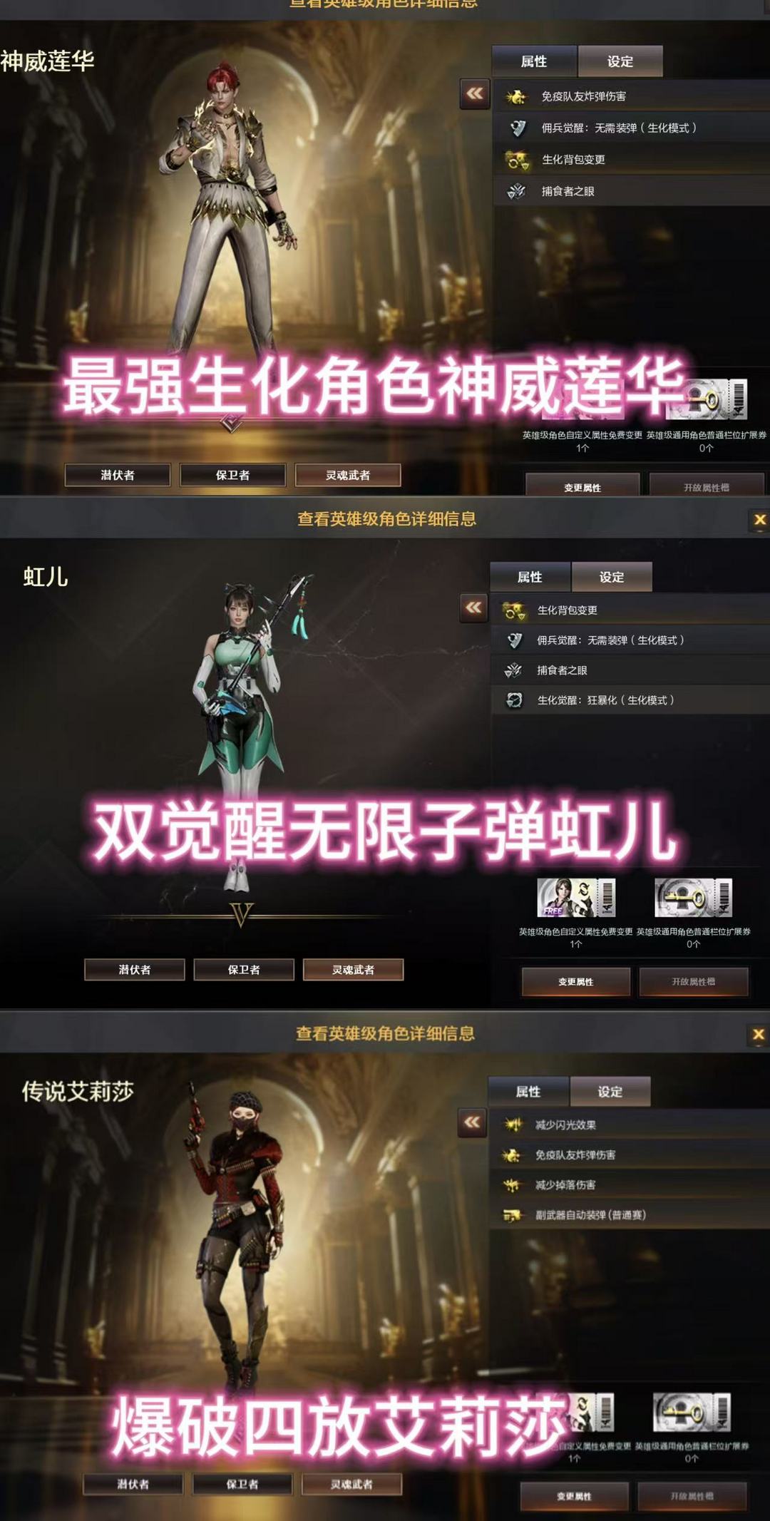 最强生化角色神威莲华双觉醒虹儿6盘炼狱金色狮子6烈龙斯泰尔蝴蝶2蝴蝶刀全生化弹夹爆破艾莉莎幻神