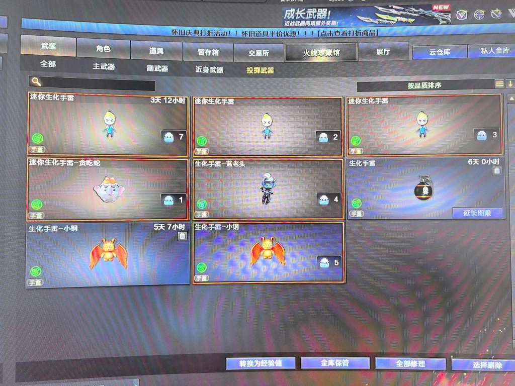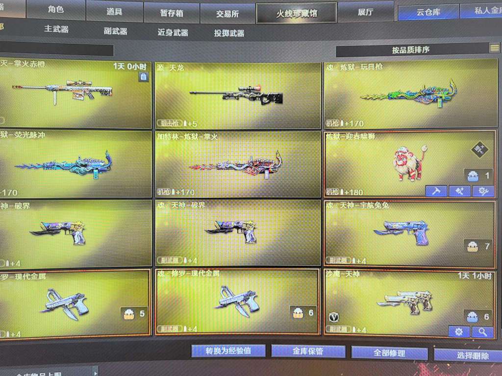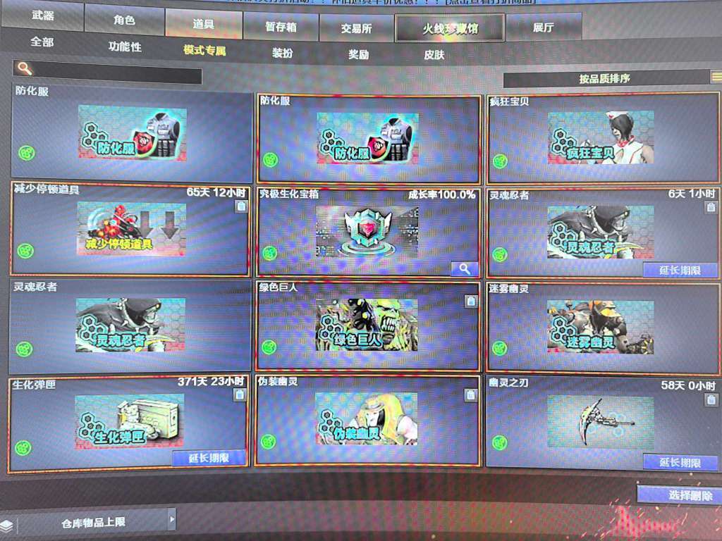 生化满配⭐神威莲华4防⭐神威天凌⭐狮子+6盘⭐清道夫+5烈⭐雷霆+镇魔者⭐全弹夹+僵尸角色+3蝶刃