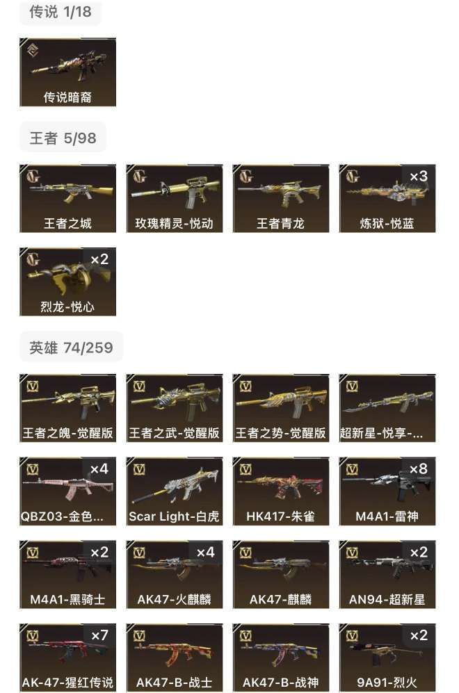 190V QBZ03 白虎 幻神 竞技荣光 6盘+炼狱 6烈+死亡之眼 皮肤多多应有尽有。