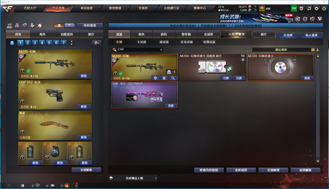 宠儿幻神+幻神音效卡传说女帝二百V荣耀枪王觉醒王者星神冠军之特USP雷暴COP幻灵春G36幻影白虎