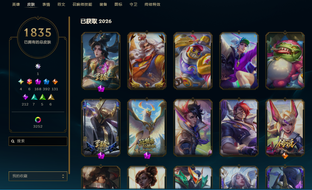 1835皮3252炫237臻彩⭐满至臻神幻⭐1名人堂4圣堂⭐6色龙瞎⭐云顶4至臻34神话10神话棋盘