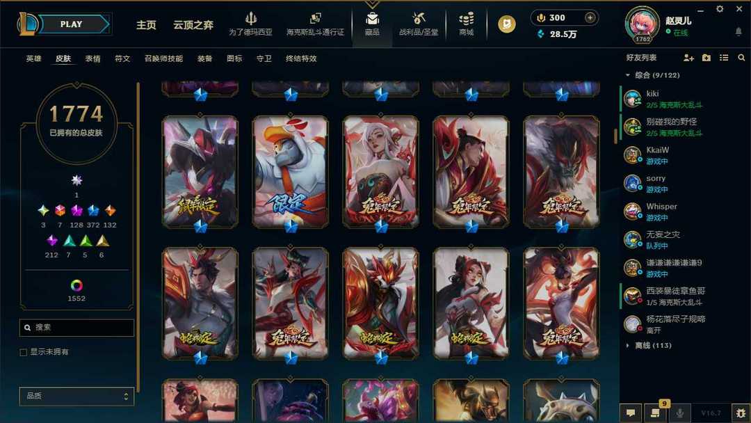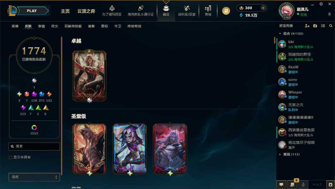 圣堂金克斯佛耶戈,神话卢娜龙王,六色龙瞎,该有的皮肤基本上都有了,不定时更新皮肤,不要删好友,谢谢,逃跑挂机必拉黑!