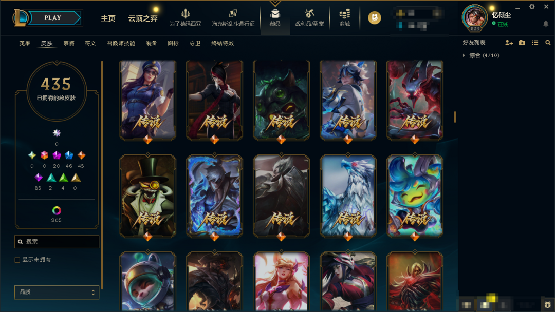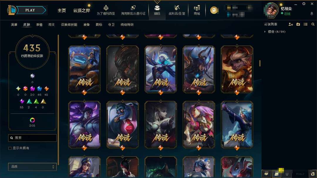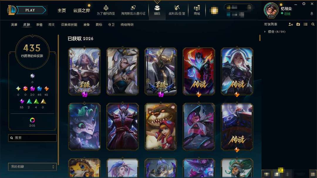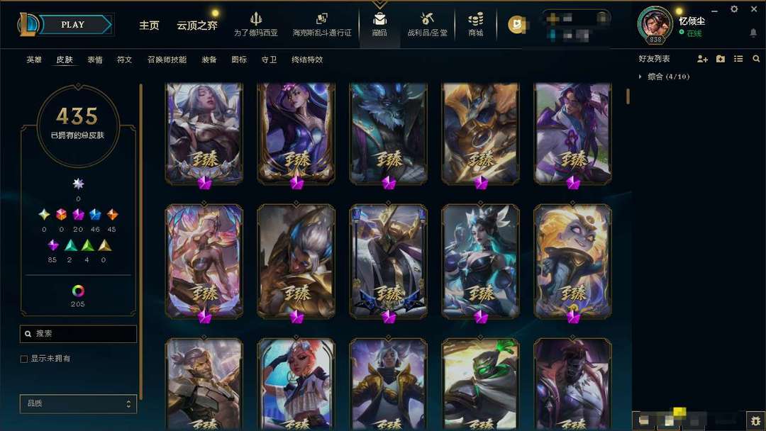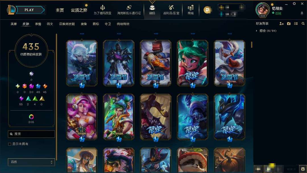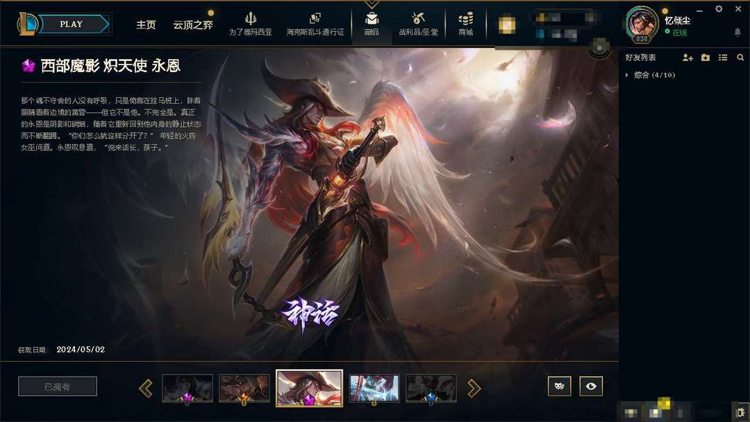氪金神话炽天使永恩。踏雪寻梅亚索。大气小亨至臻铁男。至强炫彩。优质皮肤多多。极品黑铁4