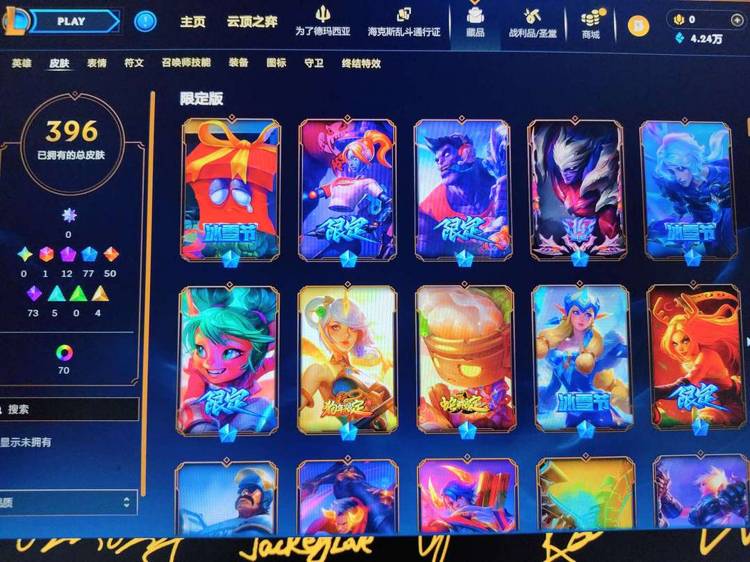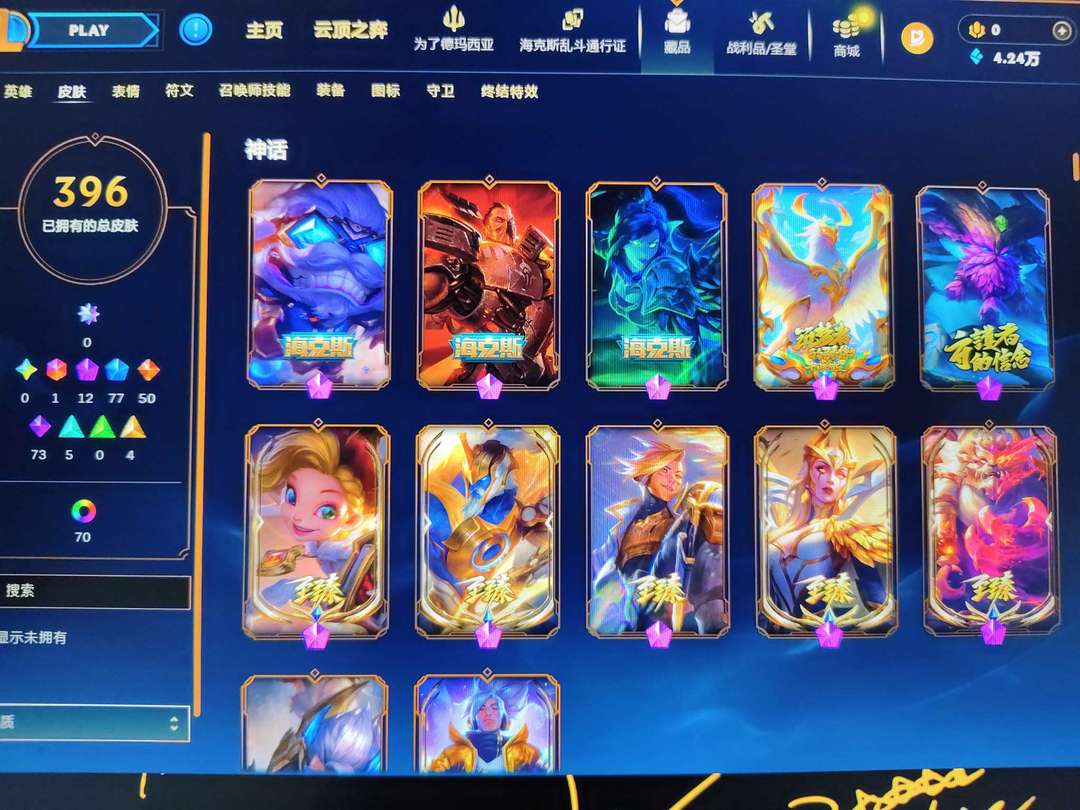 全英雄1终极 12神话 78限定 50传说 75史诗 171其他精品皮肤希望大家能来光临