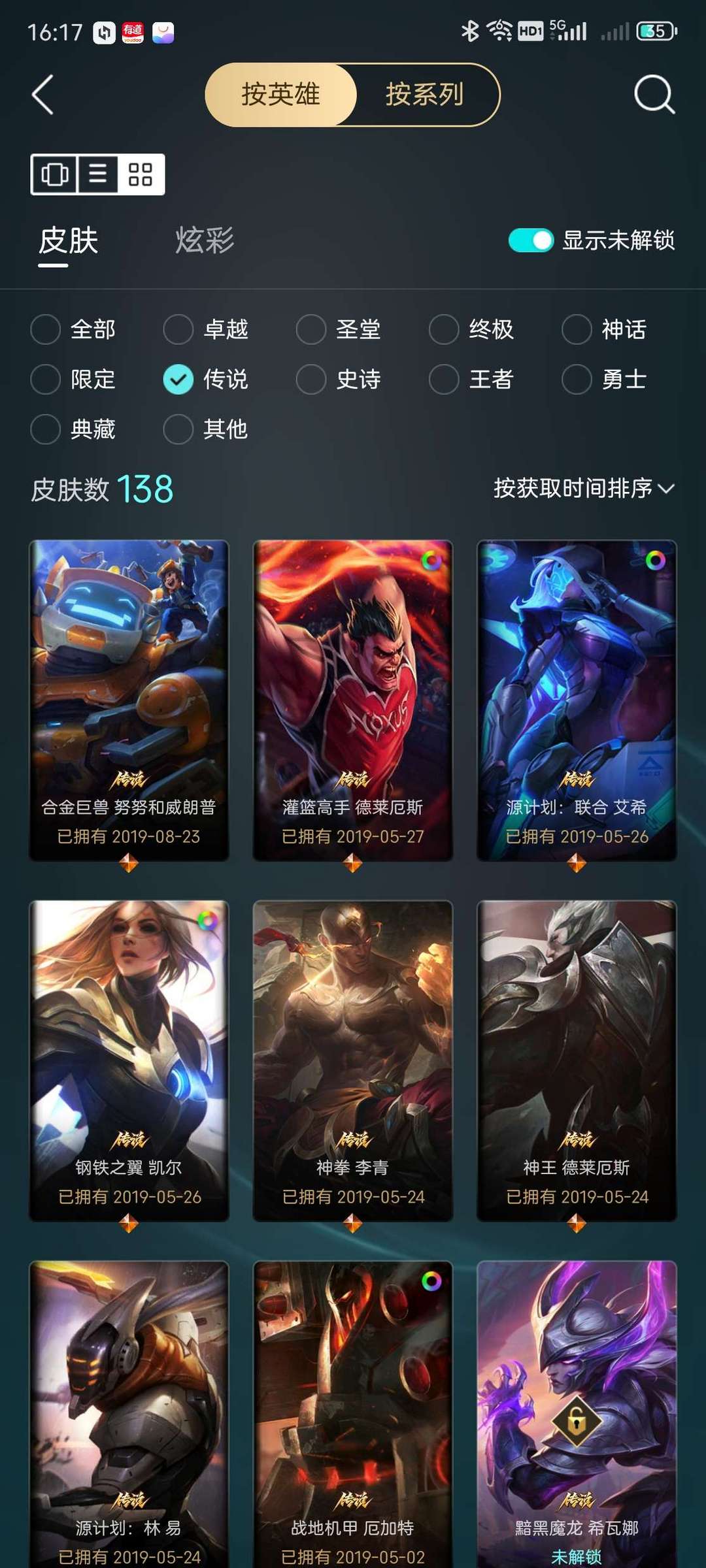 300皮肤 可排位联盟五区 全英雄 50+传说皮 精品至臻限定几乎每个英雄都有好用的皮肤 亚索黑暗使者 劫天煞 盲憎神龙神拳 艾希源计划 剑圣源计划墨之影 杰斯幸存者抵抗军学院 凯隐奥德赛心之刚 武器机甲武神