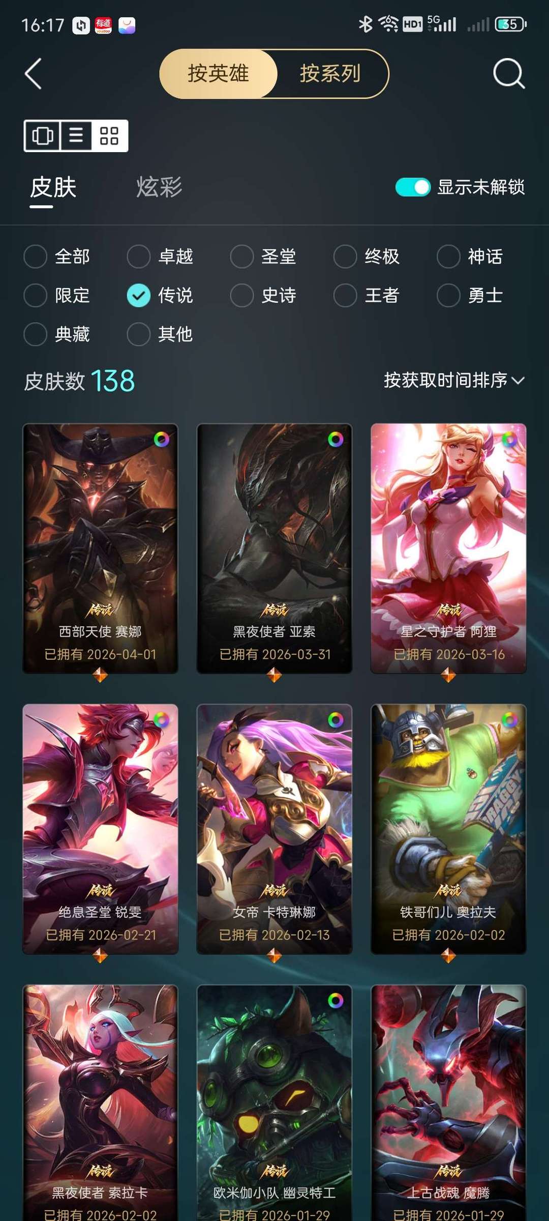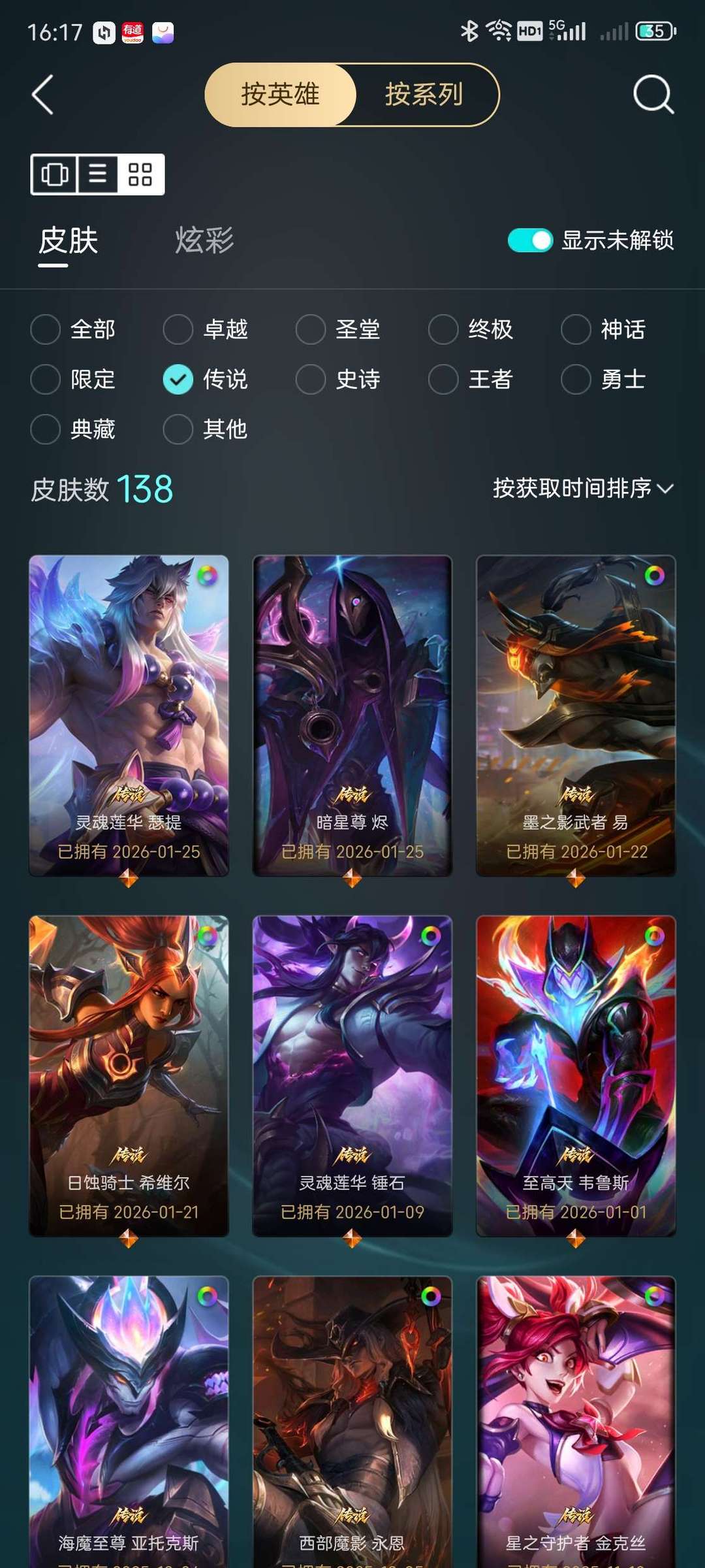 300皮肤可排位联盟五区全英雄 50+传说 几乎每个英雄都有好用皮肤 天煞劫 亚索黑夜 盲憎神龙