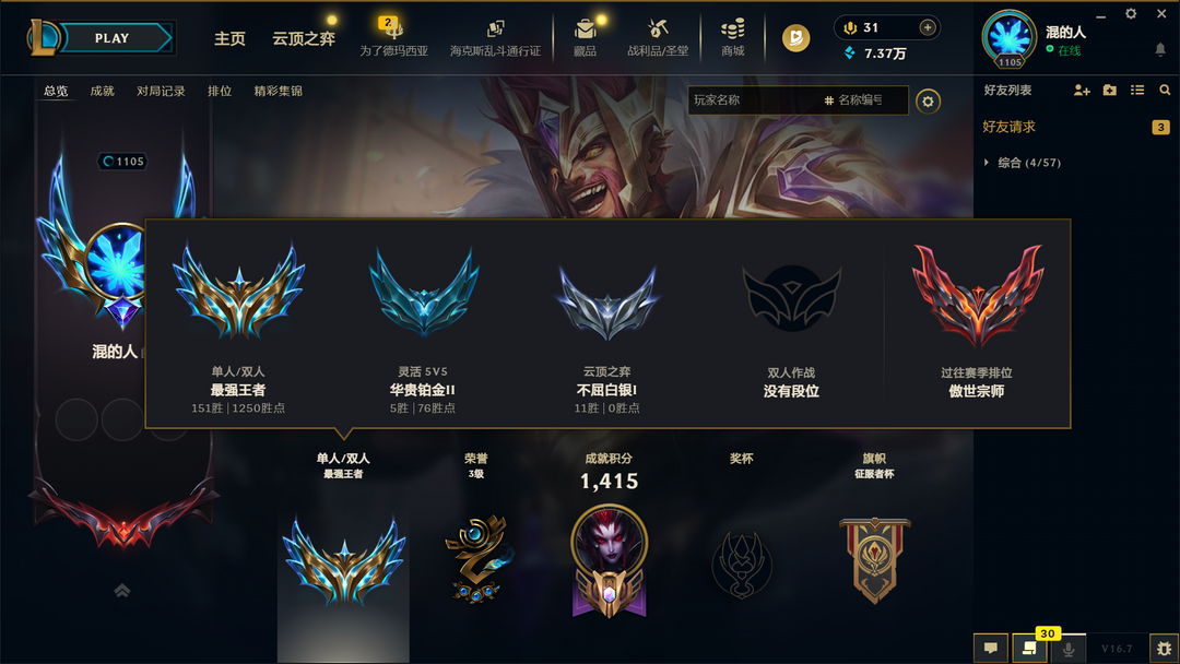 段位:1105级 最强王者