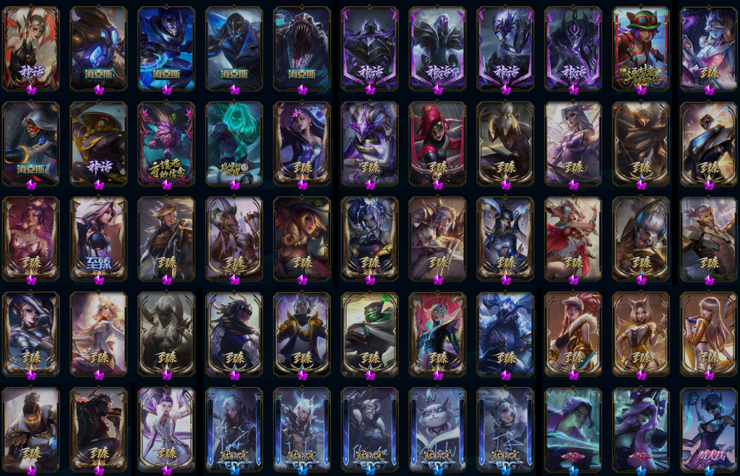 ██ 全英雄 2200皮丨60神话丨可排位丨御星丨鼠年套丨EDG套丨IG卡莎丨女帝格温丨玉剑男女刀
