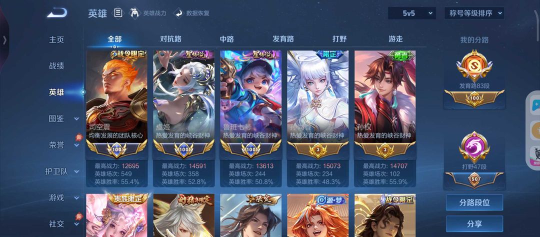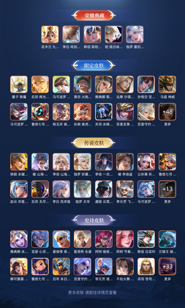 本游戏账号: V10用户,基础段位:最强王者,英雄多,皮肤多。典藏皮肤5个,感受典藏皮肤带来的优质体验快感,FMVP皮肤5个,尽情享受FMVP皮肤带来的主角光环, 私人所属英雄皮肤有:貂蝉 幻阙歌||武则天 倪克斯神谕||诸葛亮 星域神启狄仁杰 夜礼服假面||艾琳 觅芳踪||云缨 鹤归松栖||王昭君 永恒水手月亮||大乔 时之奇旅||关羽 武圣||上官婉儿 妄想奇谈||鲁班七号 时之奇旅||公孙离 记忆之芯||蔡文姬 花朝如约||夏洛特 浮生妄||王昭君 乞巧织情||张良 黄金白羊座||虞姬 无限倾心||上官婉儿 神器·万象笔||曜 山海·苍雷引||李信 山海·炽霜斩||小乔 山海·琳琅生||狄仁杰 神器·狴犴令||诸葛亮 时雨天司||不知火舞 绯月行||王昭君 星穹之声||橘右京 枫霜尽||娜可露露 前尘镜||孙尚香 音你闪耀||虞姬 启明星使||貂蝉 遇见胡旋||李信 一念神魔||周瑜 音你心动||赵云 淬星耀世||孙尚香 末日机甲||貂蝉 仲夏夜之梦||武则天 海洋之心||