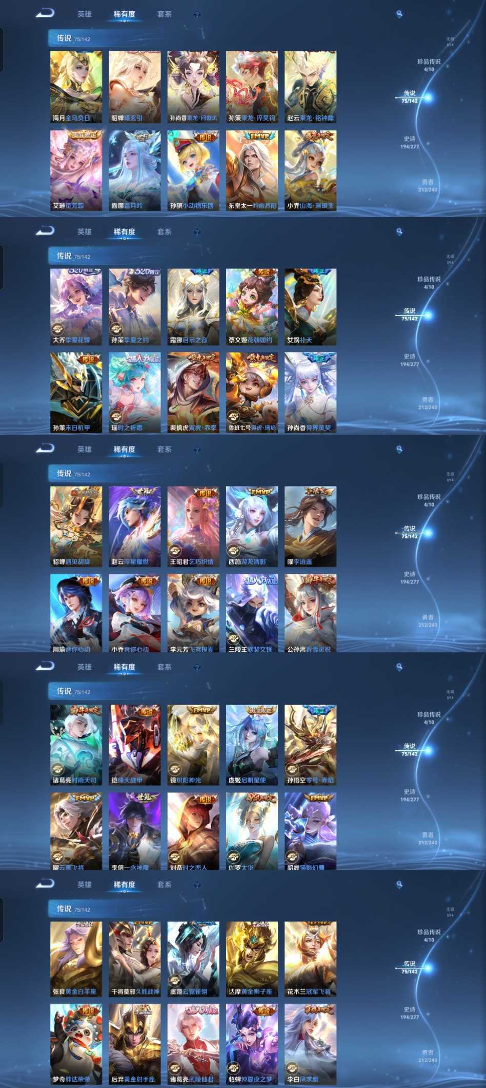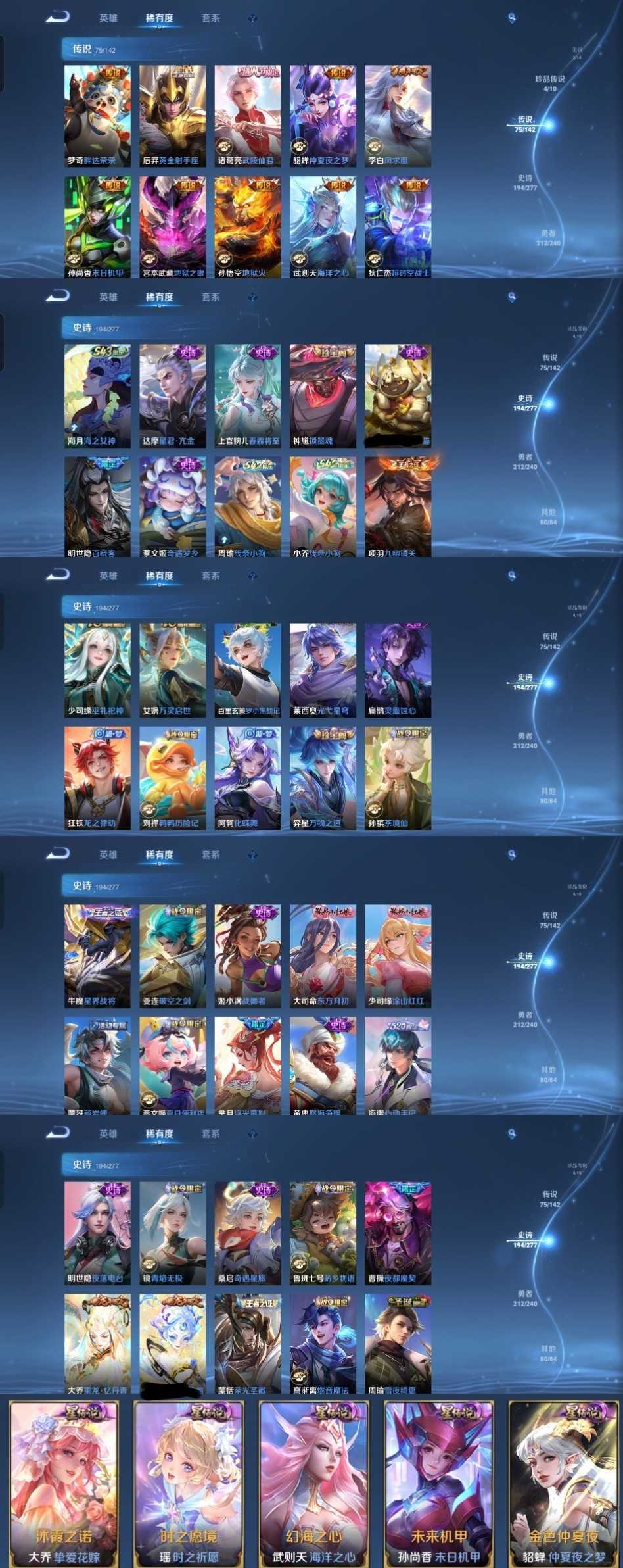 时间到了还登录白玩或者顶号全部改密拉黑处理永不解除,顶号机器会秒禁玩改密,顶号不仅拉黑还没得玩,赚三两块不容易,请理解谢谢。 ❤❤❤❤❤❤❤❤❤❤❤❤❤❤❤ 请勿开挂,挂机,送头,骂人,撤单后游戏等如有违规永久拉黑永不解除。 重置二级密码不要费劲了,号主每天都会上号查看,多行不义必自毙,人在做天在看,多做好事多自律,少做缺德事。 该号英雄130个皮肤575个,典藏9个,无双2个,珍品传说4个,传说75个,星传说5个,史诗194个,祝你游戏愉快~