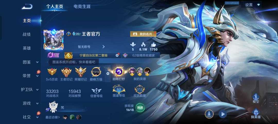 本游戏账号: V8用户,基础段位:最强王者,英雄多,皮肤多。典藏皮肤2个,感受典藏皮肤带来的优质体验快感,FMVP皮肤2个,尽情享受FMVP皮肤带来的主角光环, 私人所属英雄皮肤有:孙尚香 杀手不太冷||小乔 天鹅之梦虞姬 启明星使||狄仁杰 超时空战士||武则天 海洋之心||李白 凤求凰||孙悟空 地狱火||孙尚香 末日机甲澜 逐花归海||花木兰 冠军飞将,等等