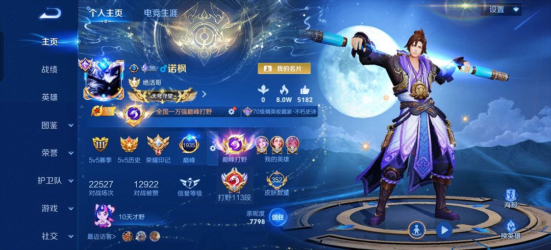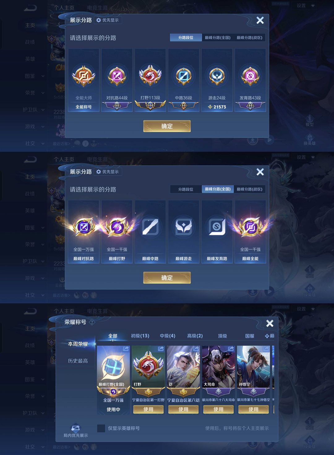 高危娱乐☞巅峰银框1935分♥省在榜♥113段国服打野☀千强打野♥继承710皮✨大国暃露娜影曹操老虎
