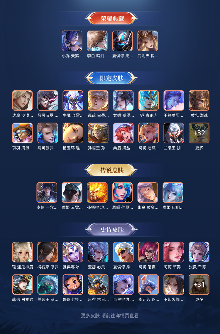 本游戏账号: ,英雄多,皮肤多。典藏皮肤3个,感受典藏皮肤带来的优质体验快感, 私人所属英雄皮肤有:夏侯惇 无限飓风号||小乔 天鹅之梦||李白 鸣剑·曳影虞姬 云霓雀翎||虞姬 启明星使||张良 黄金白羊座||鲁班七号 江户川柯南||马可波罗 怪盗基德||李信 一念神魔||孙悟空 地狱火||桑启 鸣野蒿,等等