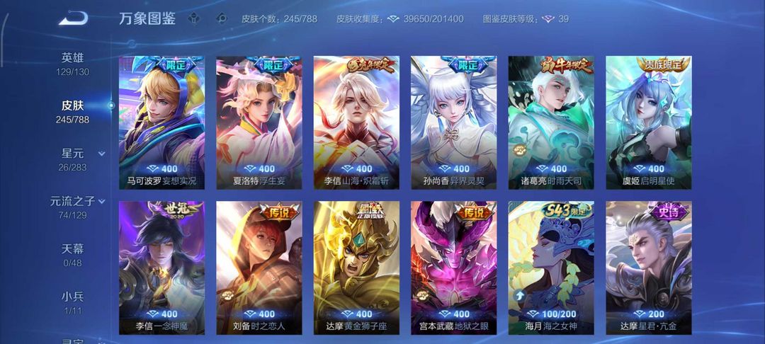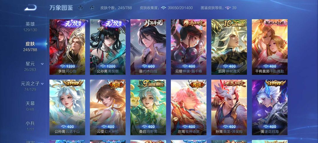 245皮⚡2无双一珍品⚡李信全皮⚡问心剑离恨烟朽木暃马年云缨千山共赴逐花归海炽霜斩异界灵契浮生妄