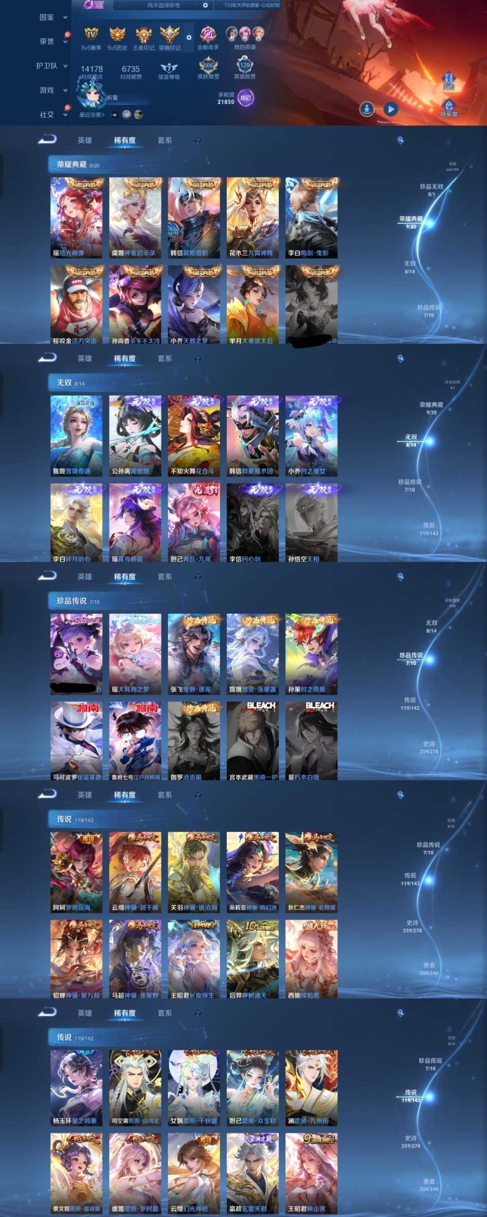 时间到了还登录白玩或者顶号全部改密拉黑处理永不解除,顶号机器会秒禁玩改密,顶号不仅拉黑还没得玩,赚三两块不容易,请理解谢谢。 ❤❤❤❤❤❤❤❤❤❤❤❤❤❤❤❤❤❤❤ 请勿开挂,挂机,送头,骂人,撤单后游戏等如有违规永久拉黑永不解除。 重置二级密码不要费劲了,号主每天都会上号查看,多行不义必自毙,人在做天在看,多做好事多自律,少做缺德事。 该号英雄129个皮肤666个,典藏9个,无双8个,珍品传说7个,星传说8个,传说119个,史诗239个,祝您游戏愉快~