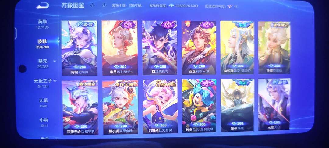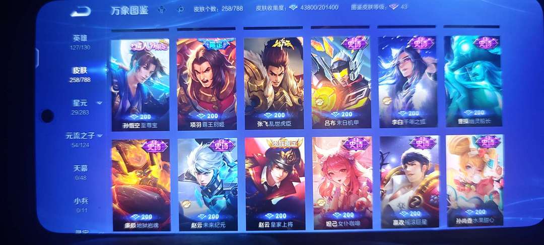 [v8账号258个皮肤]两典藏,一无双,传说若干,多限定,蛇年限全套