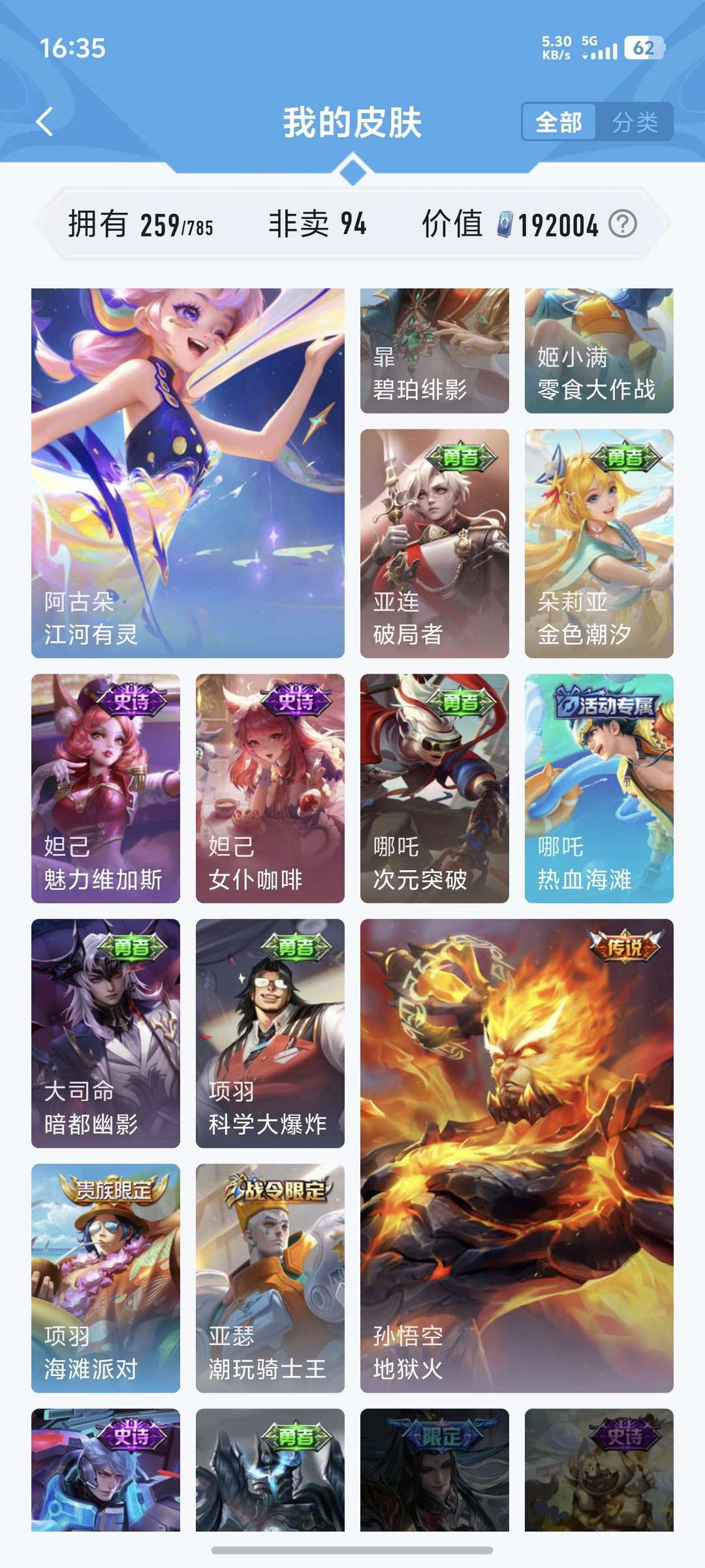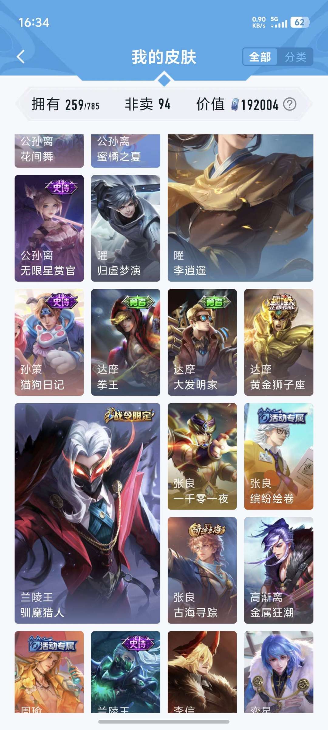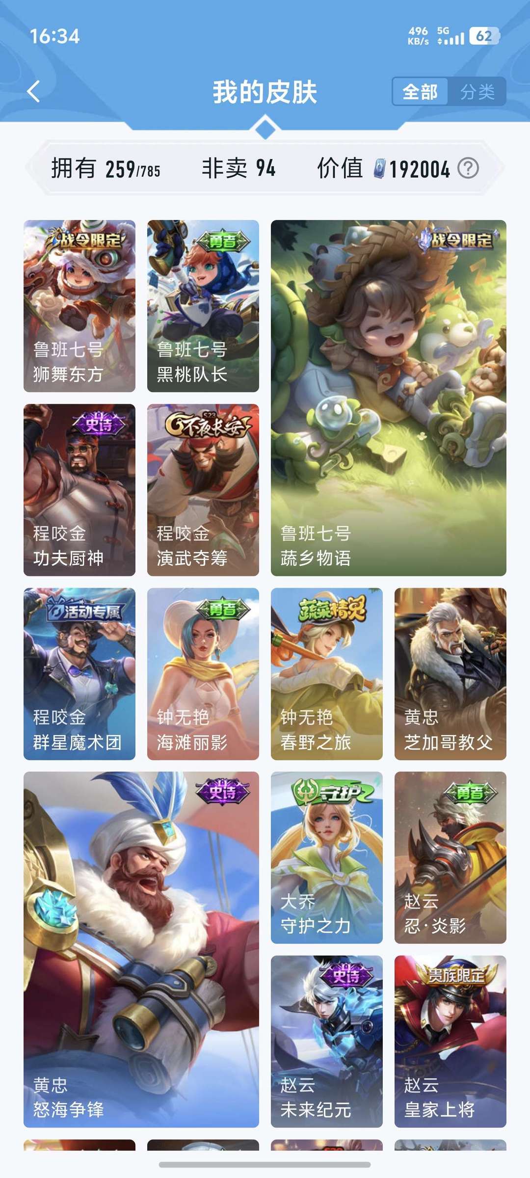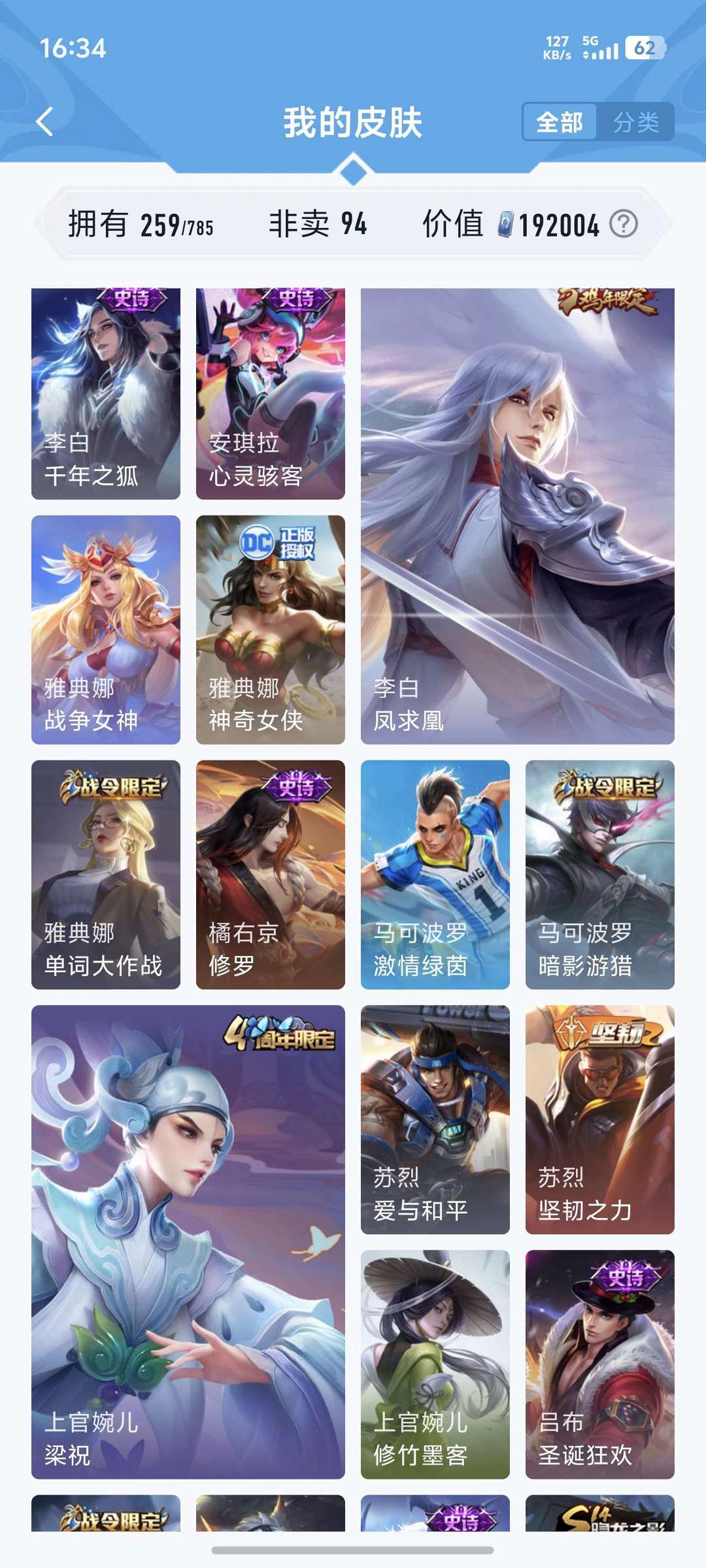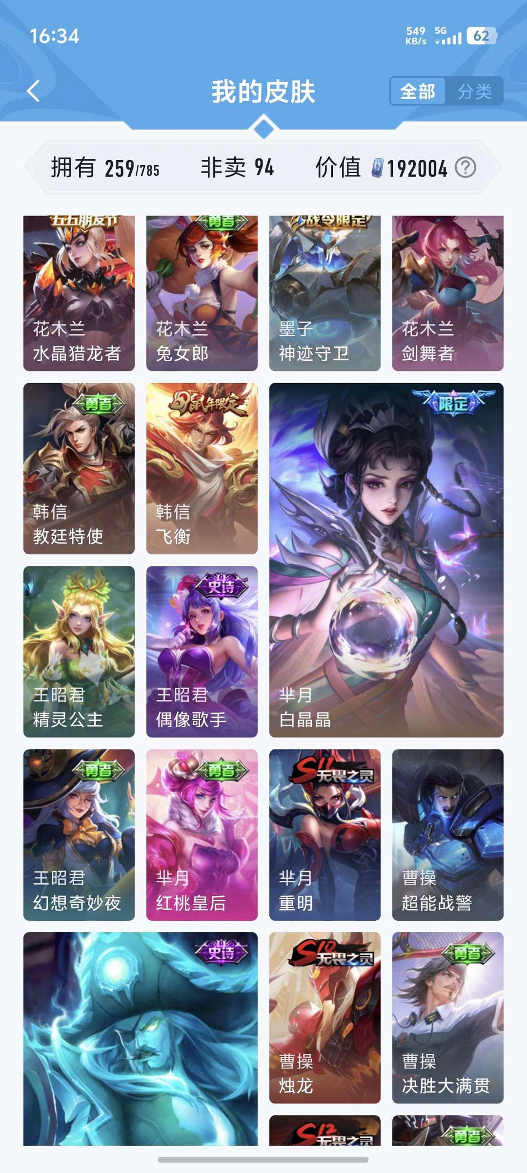 喜欢本账号请点 ☆收藏☆ 方便下次租用,谢谢光临惠顾!皮肤数:259款,含94款非卖限定,总价值19万 点券