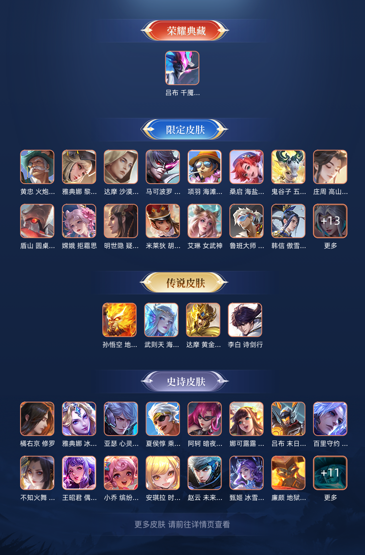 128个英雄,203个皮肤,全套铭文,星耀段位可打排位