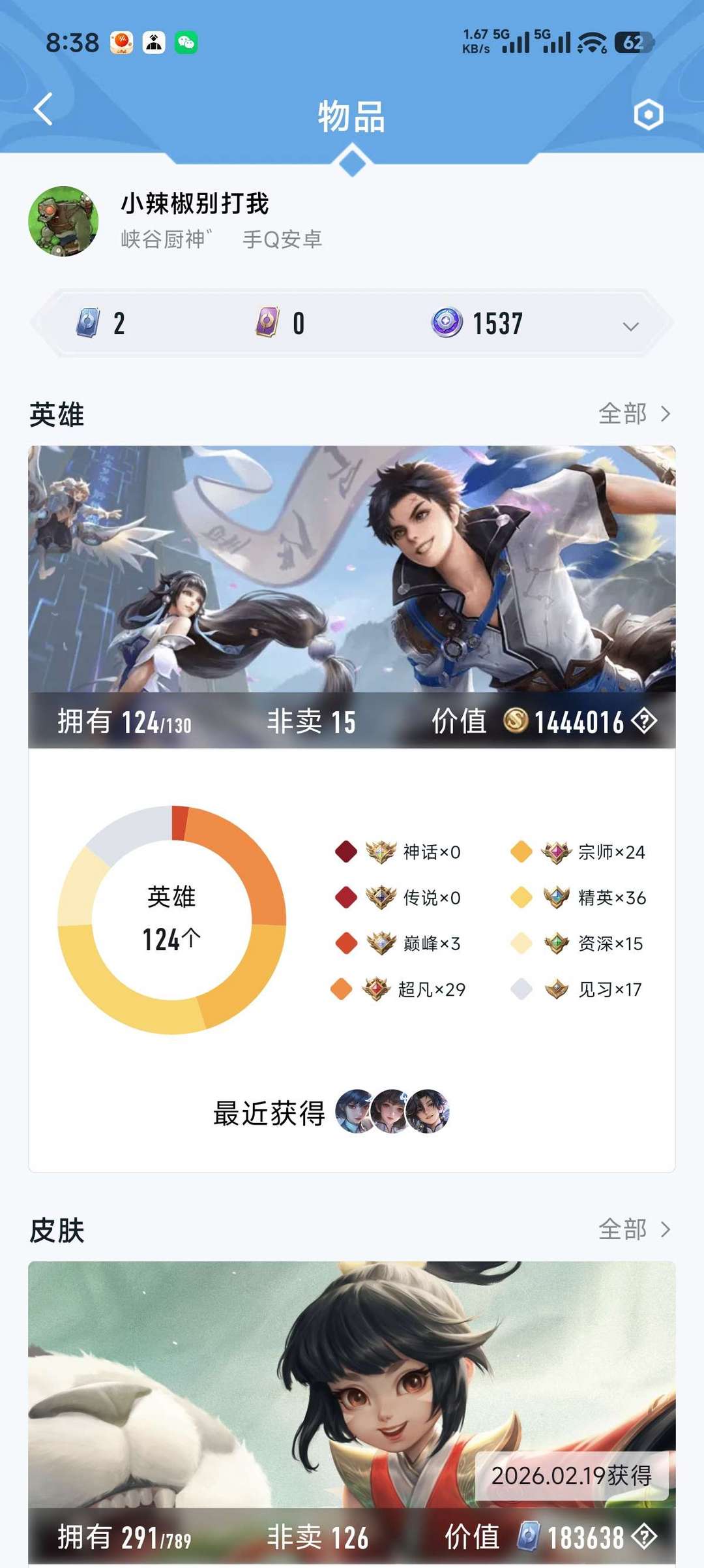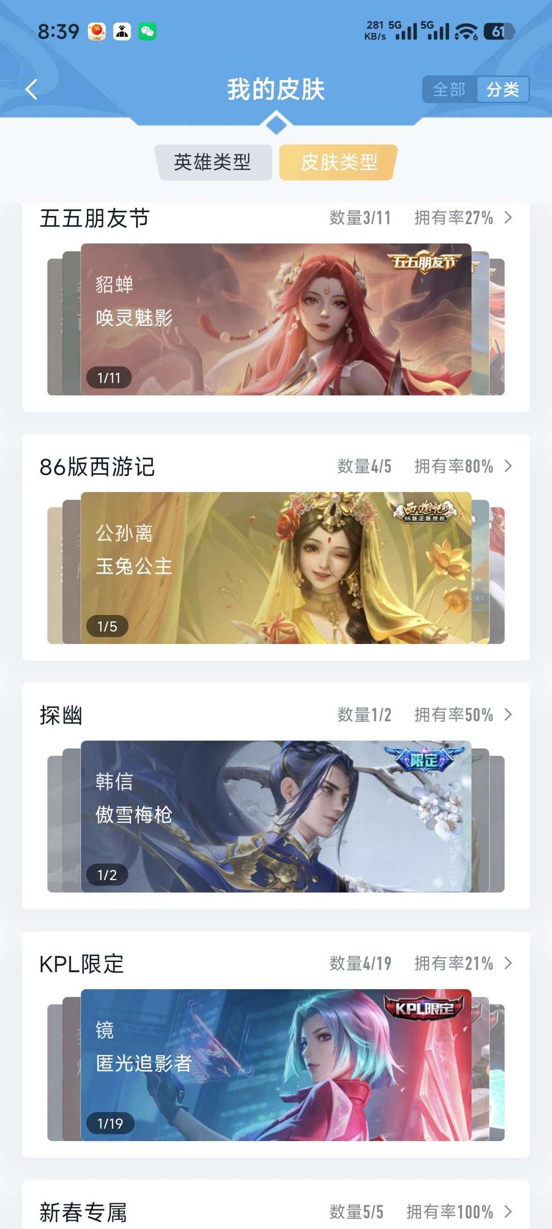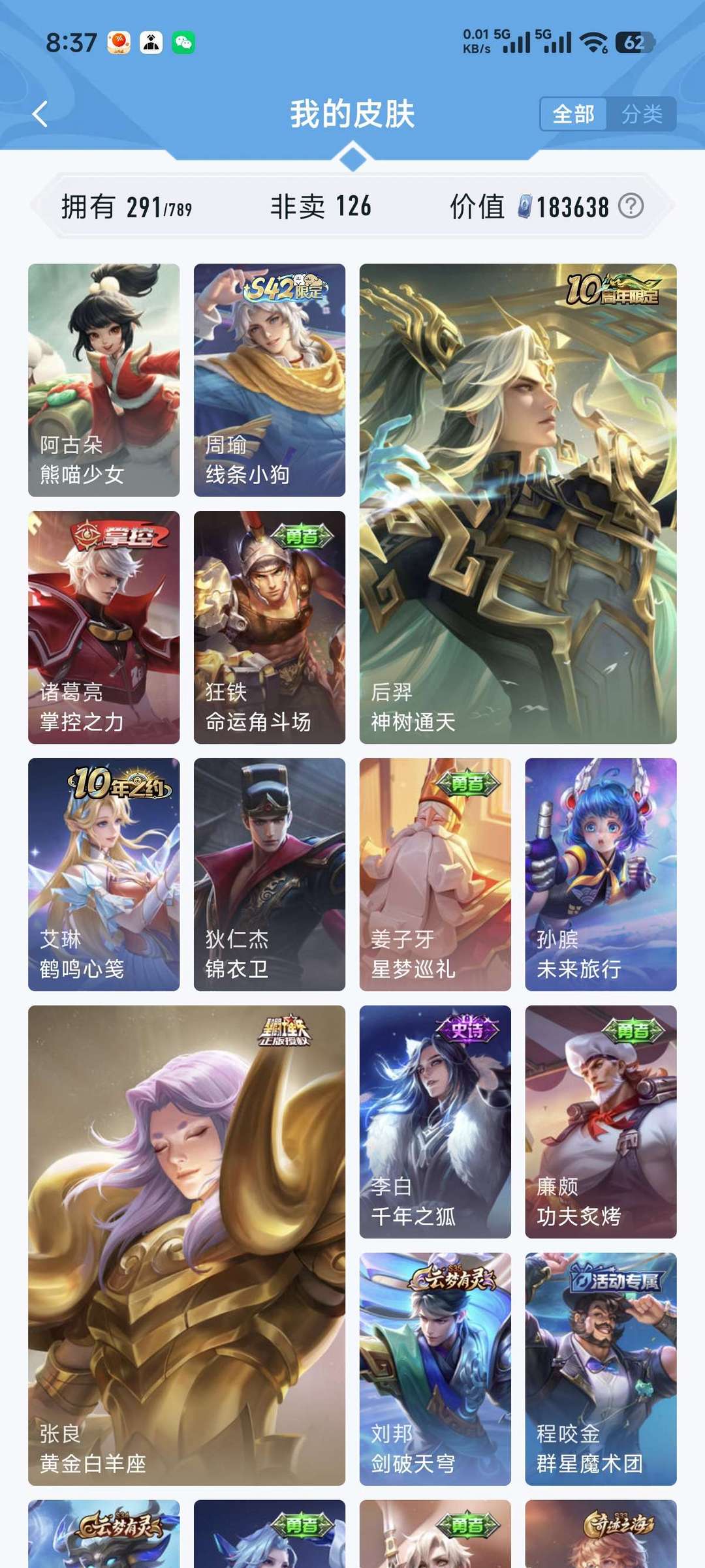 291皮肤,各种限定皮肤,武则天幻海之心,凤求凰,韩信傲梅,kpl逐梦一套,小乔周瑜纯白花嫁,等等,