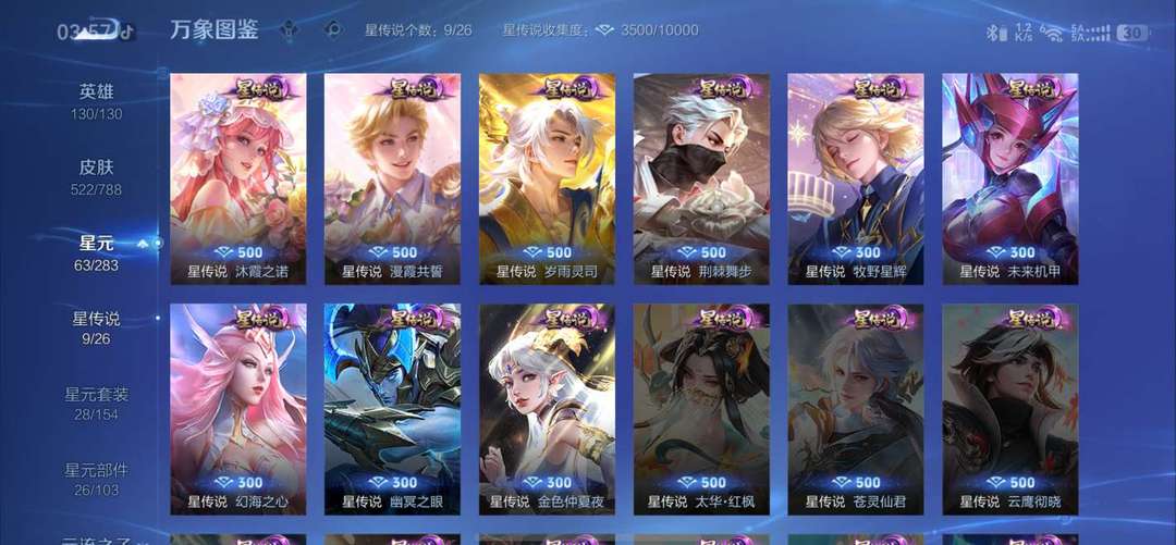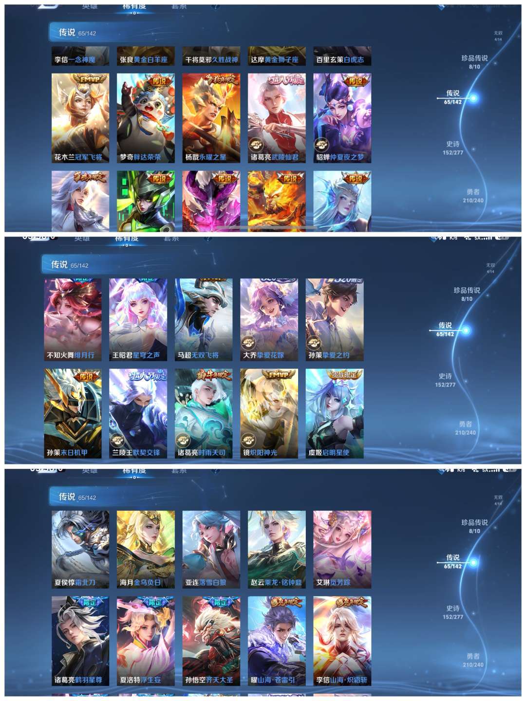 全英雄,慕夏,马年满氪,蛇年满氪,后羿李元芳曹操盘古满氪皮肤。剩下的看图片
