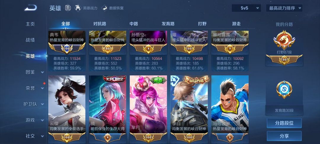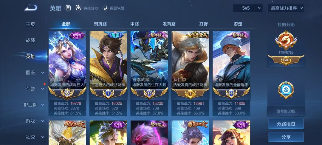 正式服在榜87段打野⭐2w分大国标雅典娜⭐1.6w小国标赵云宫本武藏刘备⭐超多限定皮肤⭐可排位